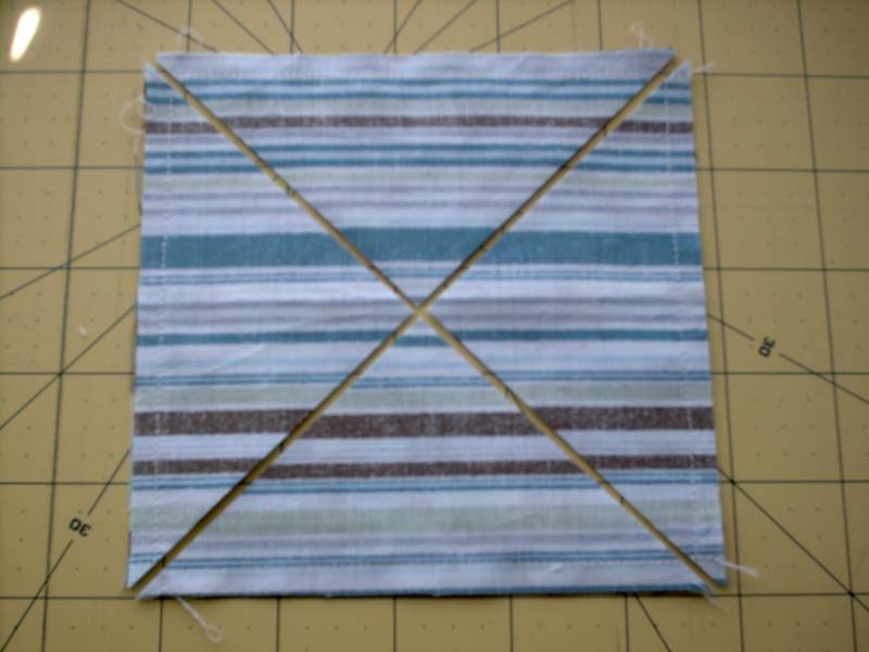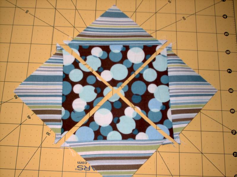 Step 2: cut the block into quarters from corner to corner